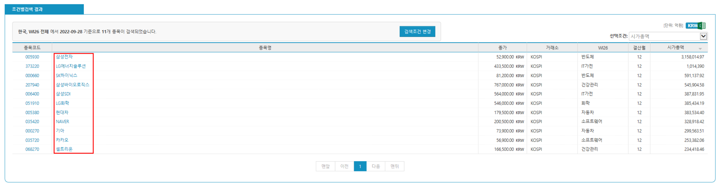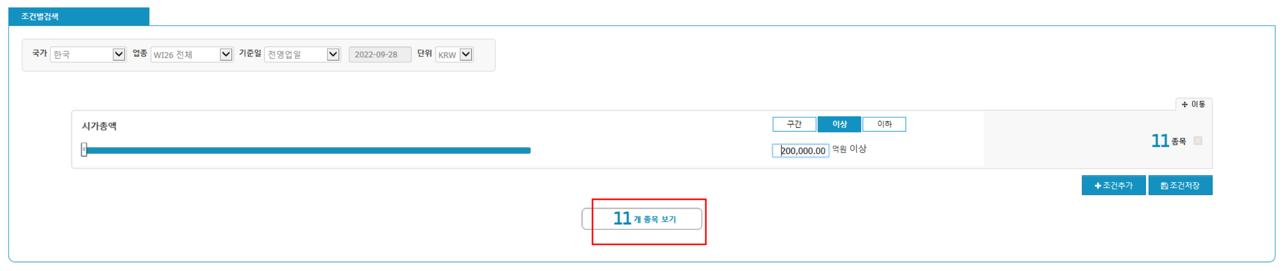 시총이 일정 수준 이상 높은 기업을 안전하다고 본다면, 저는 20조를 기준으로 잡았습니다.